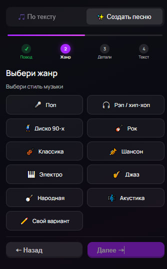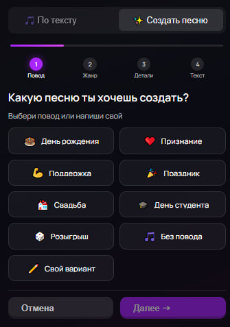 4. Получи текст песни, внеси правки и начни генерацию!